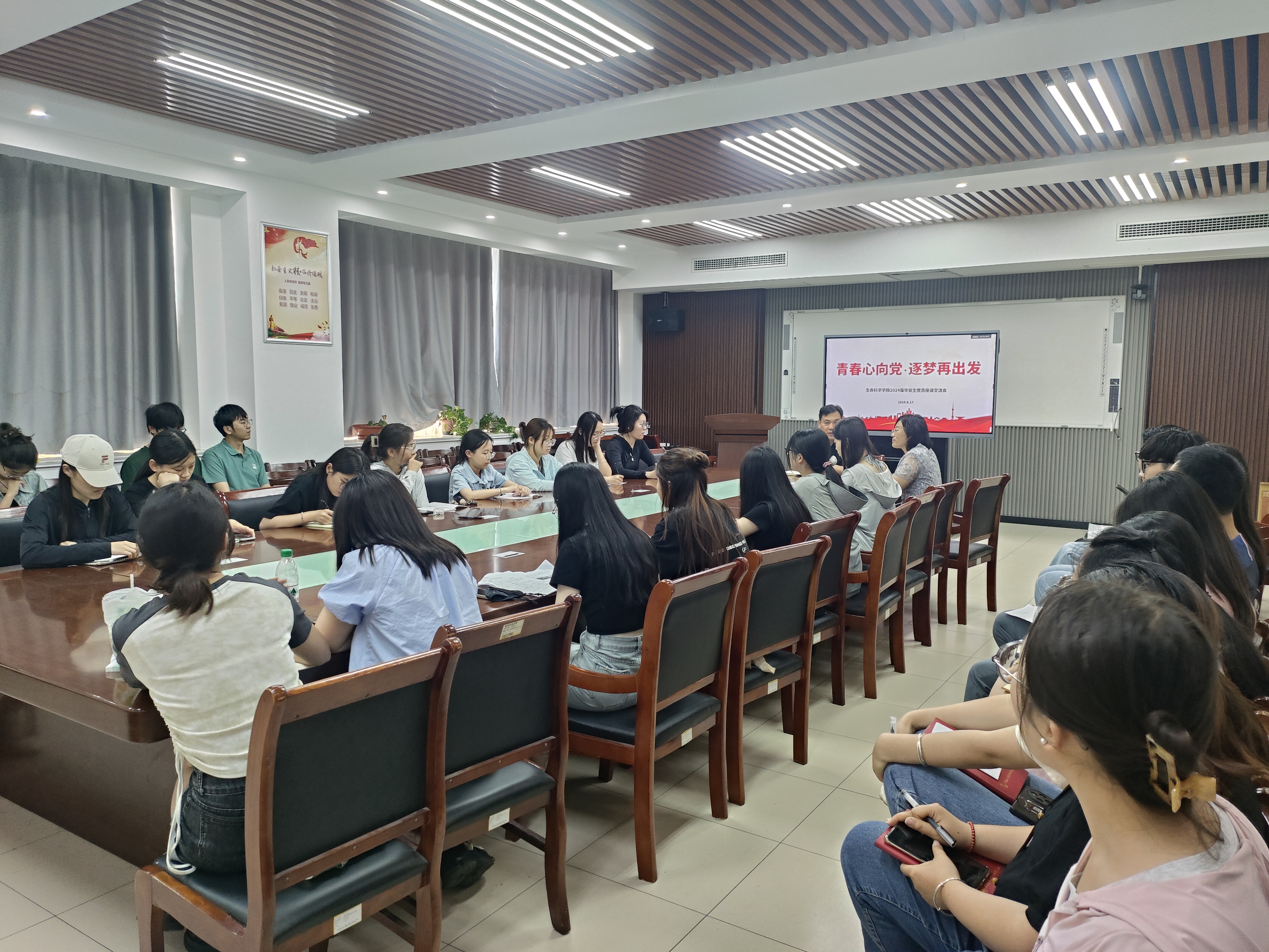 为加强毕业生党员教育,引导毕业生党员在新的岗位中充分发挥先锋模范作用,6月17日,太阳成集团tyc234cc在生物楼C305举行2024届毕业生党员座谈交流会,公司党委书记孙景福,党委副书记、副经理刘妍玲,2024届毕业生党员参加座谈会。