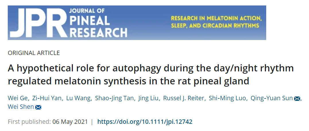 5月6日,国际著名期刊《Journal of Pineal Research》(一区,IF=14.528)在线发表了太阳成集团tyc234cc沈伟教授课题组完成的题为“A hypothetical role for autophagy during the day/night rhythm regulated melatonin synthesis in the rat pineal gland”的研究论文,首次揭示了自噬调控褪黑素合成的潜在分子机制。