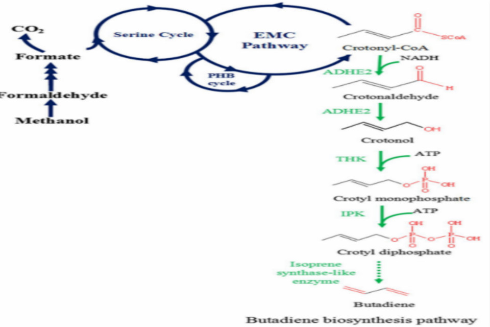 图2:甲醇生物催化转化成橡胶前体物丁二烯