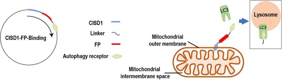 在该项研究中,研究人员通过一种线粒体外膜跨膜信号肽(来源于Cisd1基因),将自噬受体蛋白(SQSTM1)或其与自噬蛋白LC3相结合的结构域(Binding)强制性锚定至线粒体外膜,利用该质粒,研究人员在HeLa细胞中诱导出了强制性线粒体自噬,从而在HeLa细胞中选择性降解了线粒体和线粒体中的DNA(图1)。