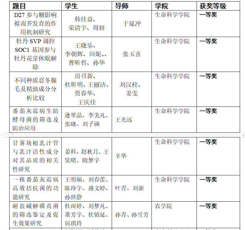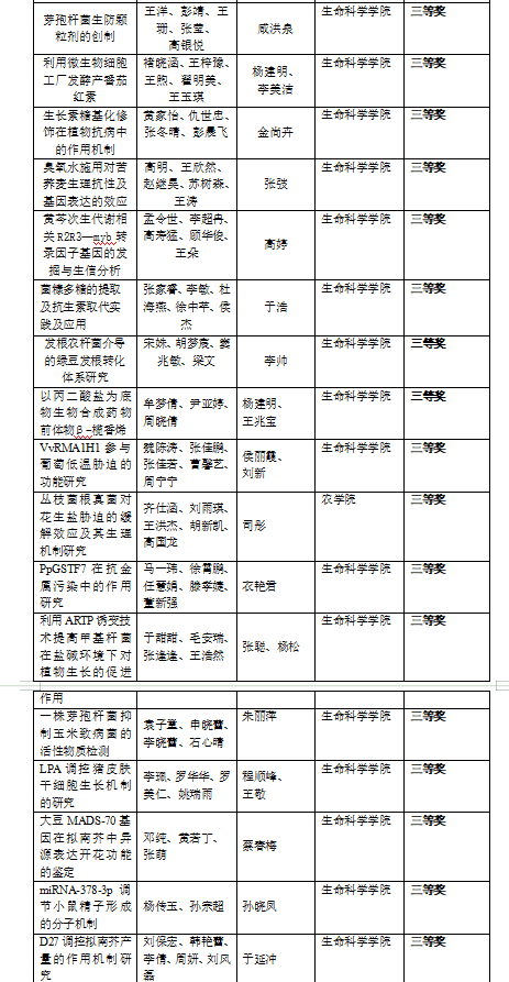 为了培养老员工的社会责任感、创新意识、团队精神和实践能力,扩大科学视野,促进老员工对于生物学相关基础知识的学习和实践能力的培养,提高综合能力,提高人才培养质量,2021年9月至10月举办了青岛农业老员工命科学竞赛,本次大赛由创新创业公司主办、太阳成集团tyc234cc承办,大赛分为生物学大赛和生物实验技能大赛两部分,近400名员工参加,评审专家从研究方案、研究过程、研究论文等方面对各参赛队作品及个人实验技能进行了综合评定,大赛最终评选出一等奖7项和12人、二等奖11项和23人、三等奖17项和35人。现将获奖名单公布如下: