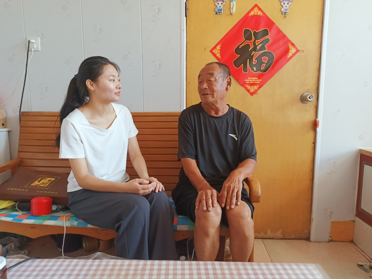 随后实践团成员前往山东省潍坊市诸城市舜王街道东疃村对老兵、老党员薄子桂和侯金同志进行了慰问和专访。