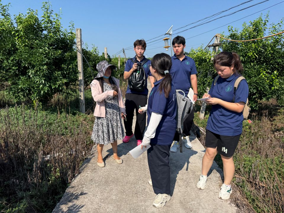 在新立镇双柏村,实践队在村党支部副书记刘秀珍的引领下,探寻到了当地柑橘产业转型的奥秘。“我们正在慢慢改种不同的柑橘品种,让柑橘的品质进一步提升”。曾经,霜冻等自然灾害让沃柑等品种损失惨重,村民们面临“种得出却不好卖”的困境。如今,通过品种改良与科学种植,这一局面正在被慢慢扭转——村里改种耐寒的九月红等新品种。不同成熟期的柑橘品种混种,提升产量稳定性,玉米与柑橘间作则兼顾家庭养殖需求,土地利用率显著提高。实践队队长周琳莉说:“品种的改良发展直接决定农民的收入,作为生物育种专业员工,我将致力于运用所学知识, 为选育更优质、高产、抗逆的品种贡献力量,助力乡亲们提升收益。”