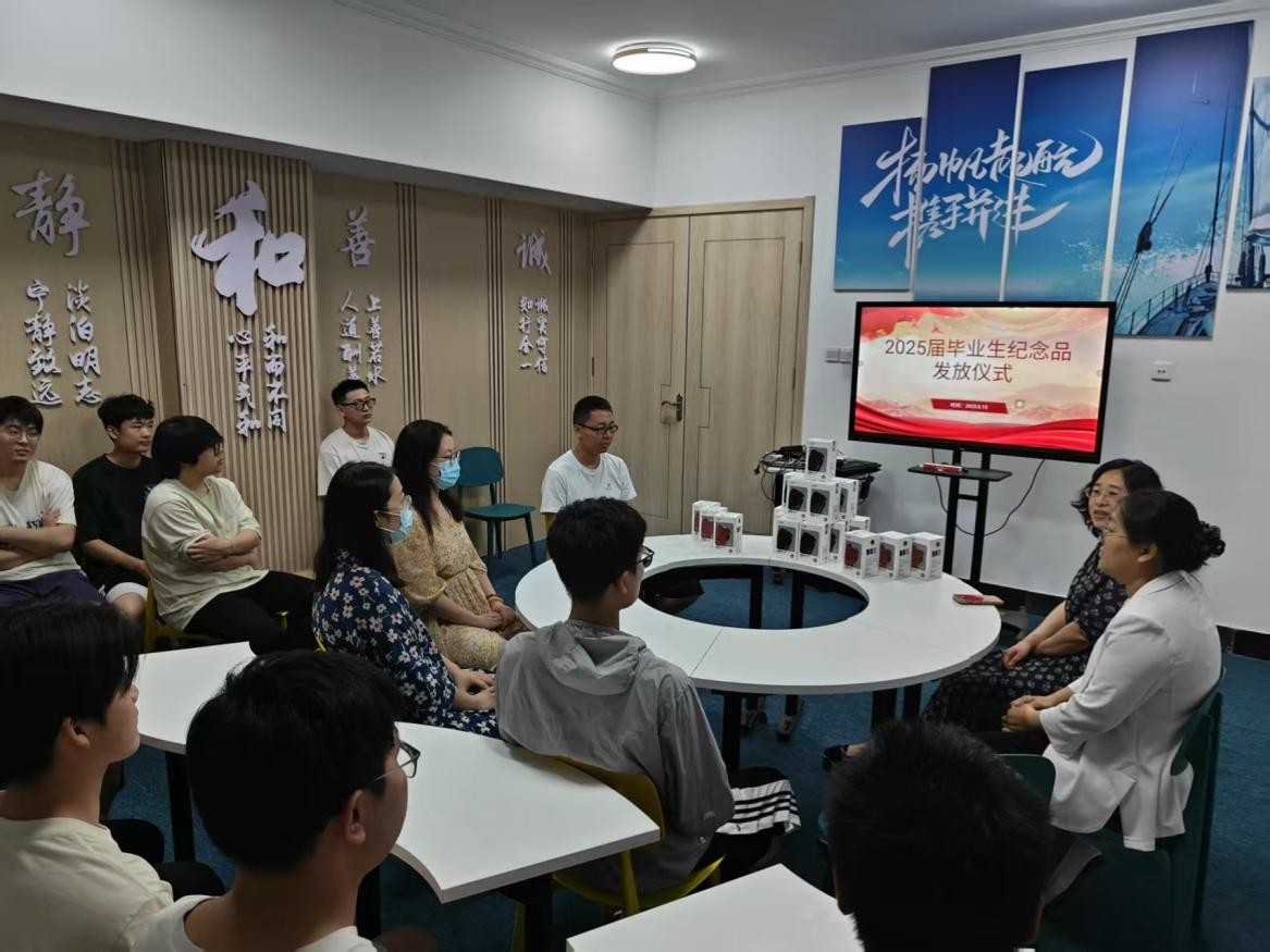 6月15日,太阳成集团tyc234cc在东苑四号楼一站式员工社区举行2025届毕业生纪念品发放仪式。公司党委副书记、副经理刘妍玲,团委书记王洋,全体辅导员老师以及大四毕业生代表参加。