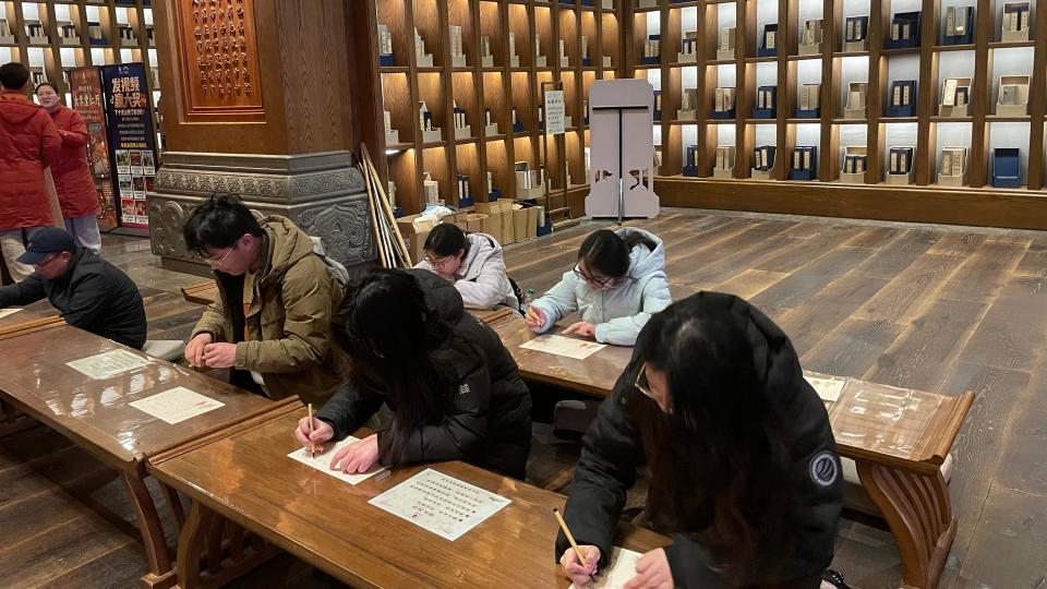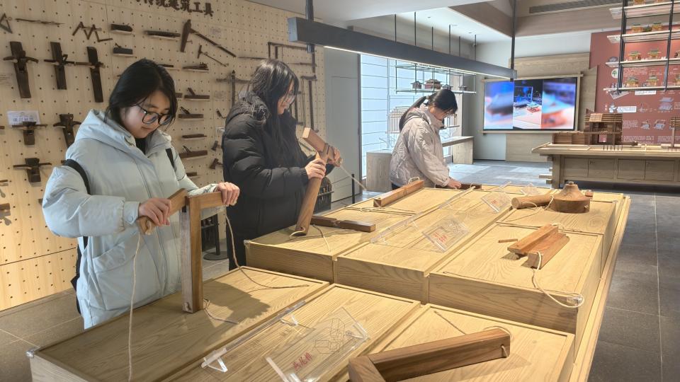 曲阜作为孔子故里,承载着深厚的文化底蕴与旅游发展潜力,并在2023年入选全国休闲农业重点县。实践团首站走进尼山圣境,在巍峨的孔子像前,队员们不仅感受到儒家文化的庄重肃穆,更关注景区如何将文化资源转化为旅游产品,带动周边乡村发展。随后,团队走访了依托尼山文旅发展的鲁源村,该村以“儒风乡韵”为主题,打造了一批特色民宿与文创街区,队员们沉浸式体验了非遗纺织扎染工艺,非遗建筑榫卯,论语撰写等活动,欣赏了演出《金声玉振》《子贡尊师》,在非遗体验中体会曲阜特色文旅与传统文化的魅力。
