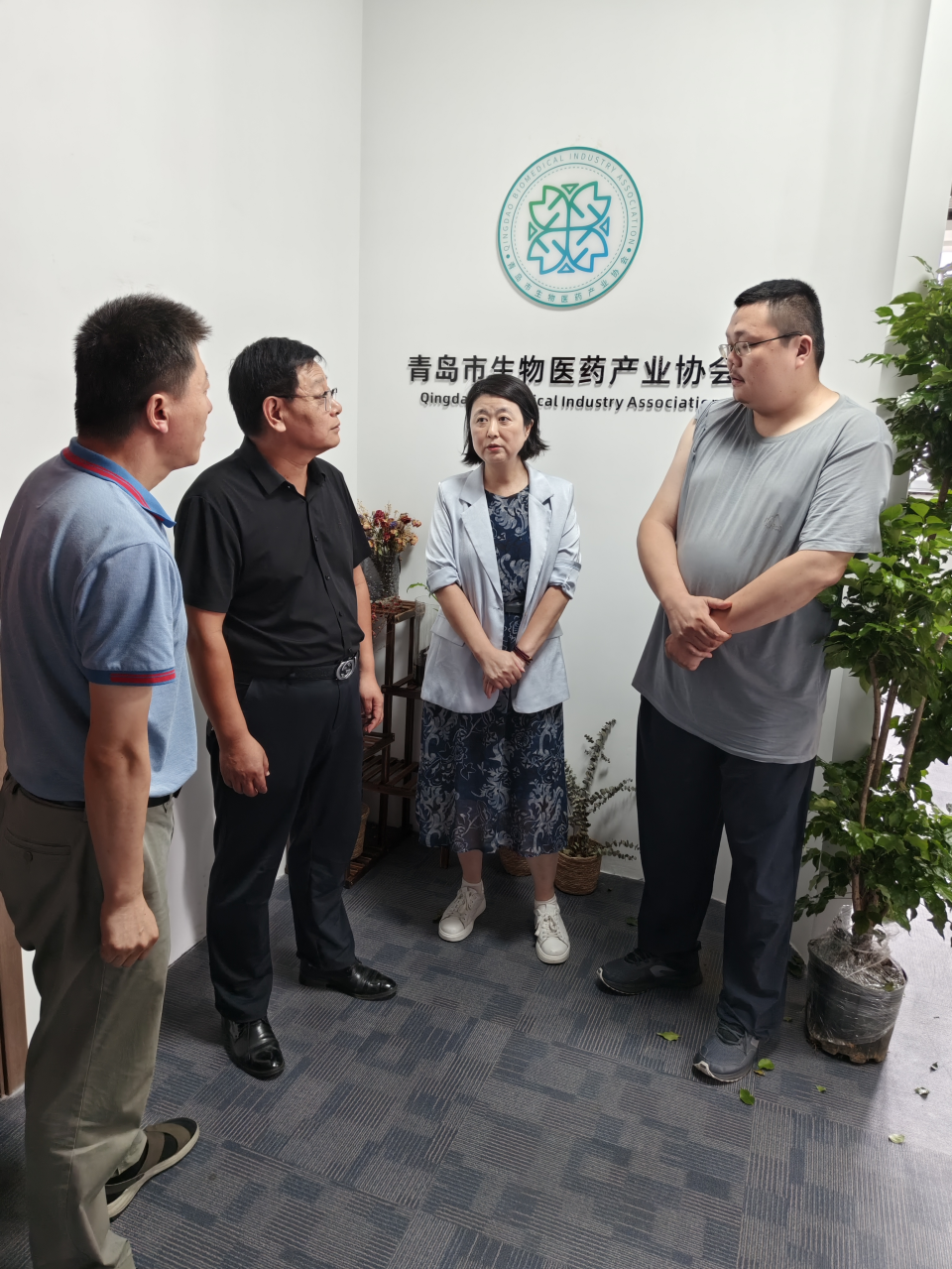 为加速科技小院科研成果落地应用、有效解决食药用菌产业难题、深入了解生命科学相关的生物医药科研和产业领域的实际需求,7月30日,国家级科技小院山东平菇科技小院首席专家李树文博士带领科技小院经理丁佳乐(硕士研究生)赴青岛市生物医药产业协会开展技术交流。青岛市生物医药产业协会秘书长孔若霞、青岛市生物医药产业协会副会长史卫东教授、山东大有投资有限公司桑元斌博士一同交流。