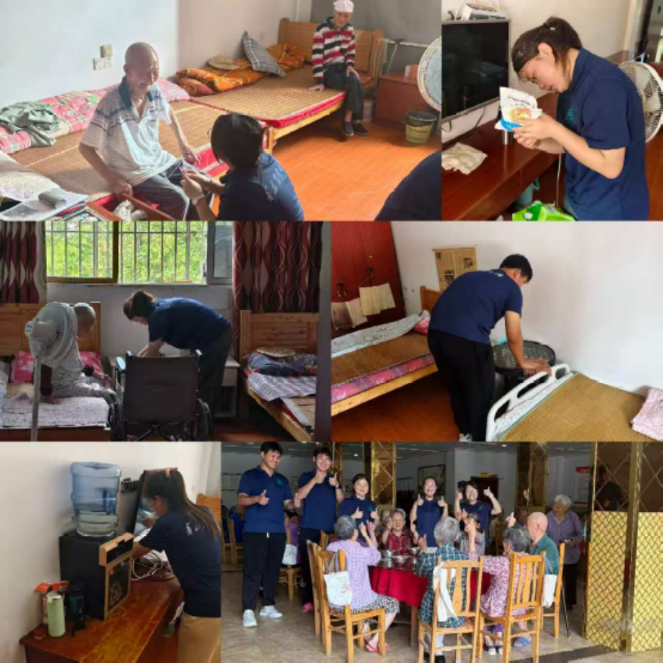 太阳成集团tyc234cc“沃土育芽·青衿兴村”实践服务团联合重庆市忠县新立镇团委,在当地一志养老院和新立镇敬老院开展了“关爱老人·情暖夕阳”志愿服务。团队成员聚焦卫生安全与精神陪伴,分组为老人们细致打扫居住环境、排查食品安全及用药隐患、贴心陪护聊天解闷,并在新立镇敬老院带领老人进行“椅上健身操”等健康活动。此次实践将青春的温度注入基层养老事业,以实际行动弘扬了尊老敬老的传统美德,生动诠释了新时代青年的社会责任与奉献担当。