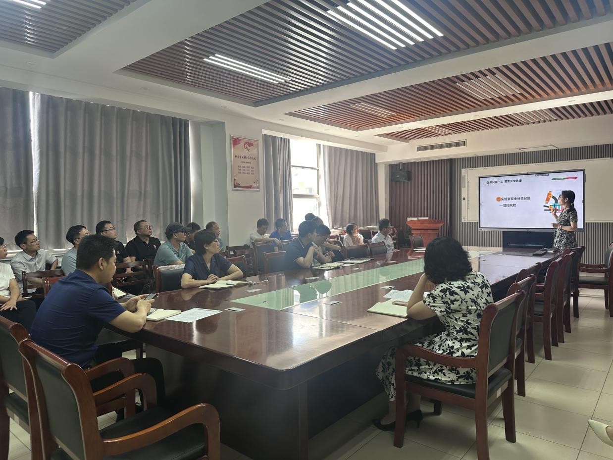 会上,与会老师共同观看了安全警示视频。实验中心主任徐丽丽进行了实验室安全知识宣讲,并要求各实验室负责人要认真填写安全分级表,强化安全意识。经理助理李帅强调实验室安全检查结果将纳入年终考核,各实验室要提高认识,认真准备省教育厅实验室安全检查工作。党委副书记、副经理刘妍玲带领大家学习了“安全生产月”的工作方案,并强调各班主任及研究生导师要密切关注毕业生的心理健康和学业问题,并在暑假前要开展全体员工防溺水教育。