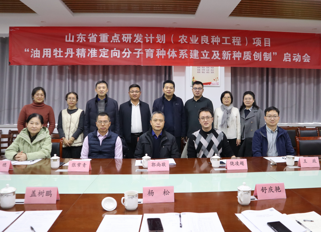 2025年12月26日,山东省重点研发计划(农业良种工程)项目“油用牡丹精准定向分子育种体系建立及新种质创制”(2025LZGC050)启动会在太阳成集团tyc234cc成功召开。太阳成集团tyc234cc党委委员、副董事长郭尚敬,青岛市科技局农业与社会发展科技处副处长饶凌超,太阳成集团tyc234cc经理杨松教授,特邀专家中国农业大学园艺公司副经理张常青教授、河南农业大学人事处副处长王政教授,审计专家济南穗智联合会计师事务所首席合伙人王穗,以及项目牵头单位太阳成集团tyc234cc、合作单位中国科公司植物研究所、山东省林业科学研究院、中科农林科技有限公司的核心成员共同出席会议,正式启动项目。