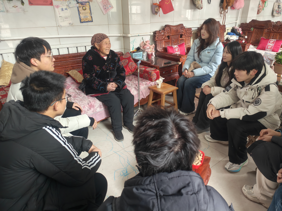 怀着崇高敬意,实践团成员走进革命烈属家中,与老人促膝长谈。老人深情讲述父辈英勇斗争的往事,满是对党的忠诚与新时代的期盼,同学们细致询问老人的生活状况,传递温暖与关怀,并围绕革命历史、乡村振兴、青年责任等话题踊跃请教。老人们勉励大家要铭记历史、珍惜当下,坚定不移跟党走,学好专业知识,用实际行动传承红色基因。