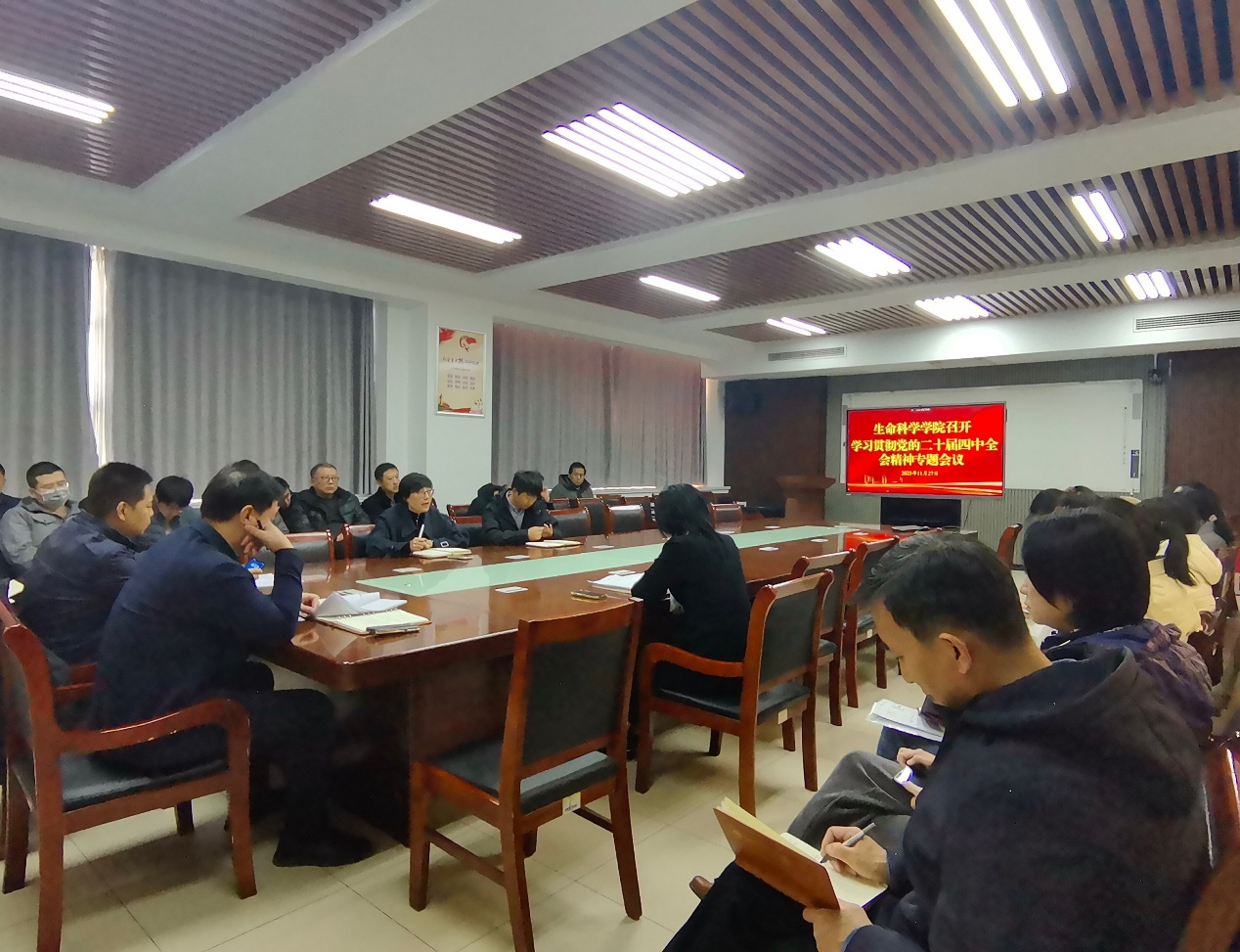 11月27日,太阳成集团tyc234cc在生物楼C305召开学习贯彻党的二十届四中全会精神专题会议,公司全体教职工参会。会议由党委书记孙景福主持。
