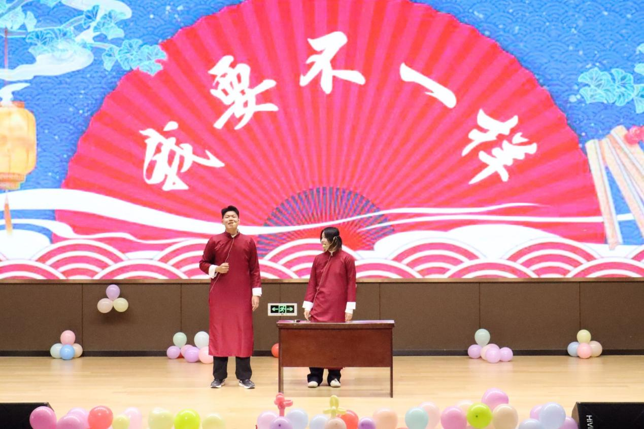 第三篇章“抒怀时光·艺满芬芳”在深情的钢琴演奏《说了再见》中开启,琴声流转间勾勒出青春时光里的细腻情感与绵长思绪。生科2504班带来的话剧《谁逼疯了周日》以鲜活生动的表演和巧妙设计的剧情,幽默呈现当代学子生活中的真实片段。《如愿》以真挚歌声致敬先烈,传递出铭记历史、奋发向前的深沉力量。最后,公司员工会骨干与各班班委共同献上歌舞《像你这样的朋友》,以充满活力的编排与洋溢热情的演绎,展现出生科团体并肩同行、温暖相伴的深厚情谊,为第三篇章画下真挚而昂扬的句点。
