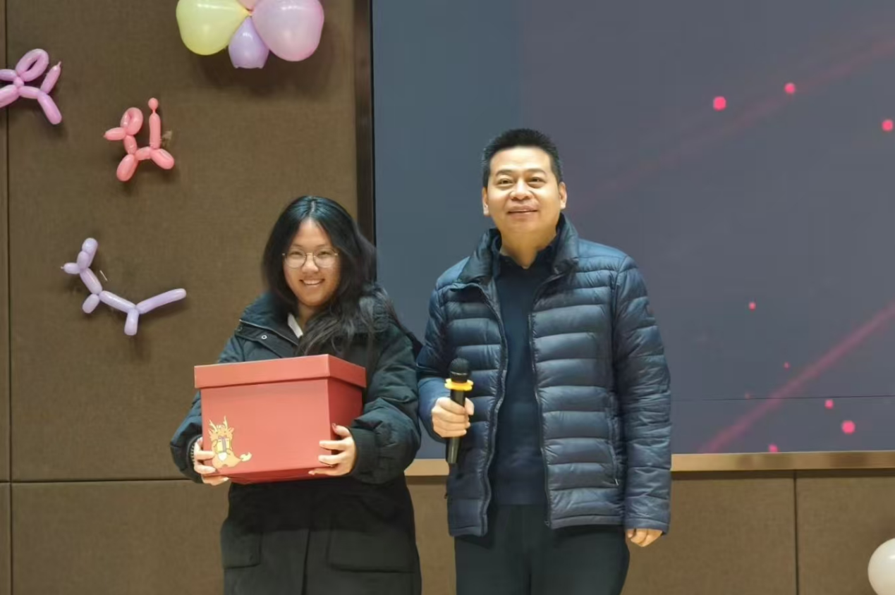 第一篇章“逐梦青春·乐动生科”在活力四射的舞蹈《Gee》中拉开序幕。学子们以轻盈的舞步与灿烂的笑容,传递出青春的跃动与朝气;古筝演奏《天下》,弦音流转、气韵悠长,演绎出传统与现代交织的艺术感染力。公司合唱团携生科2502班、生科2505班共同献唱《上春山》,歌声清亮和谐,如春风拂面,将现场带入一片温暖明媚的意境之中。篇章尾声,孙景福为公司第二届班旗设计比赛获奖班级颁发荣誉,并现场抽取了第一轮幸运大礼包,将气氛推向又一波高潮。